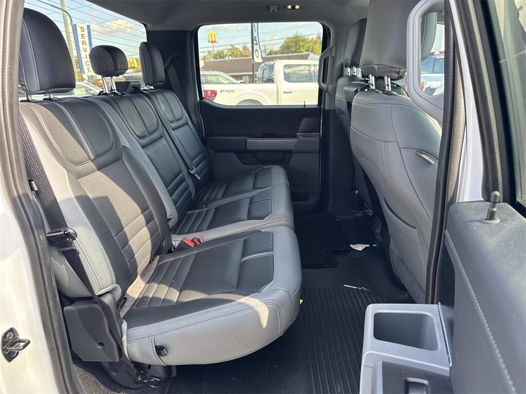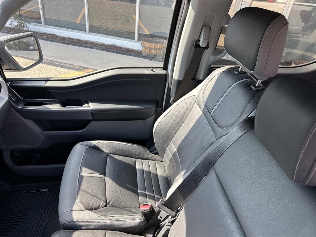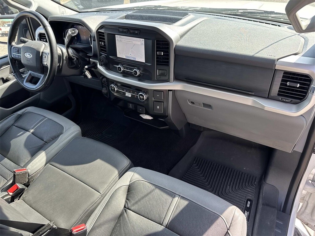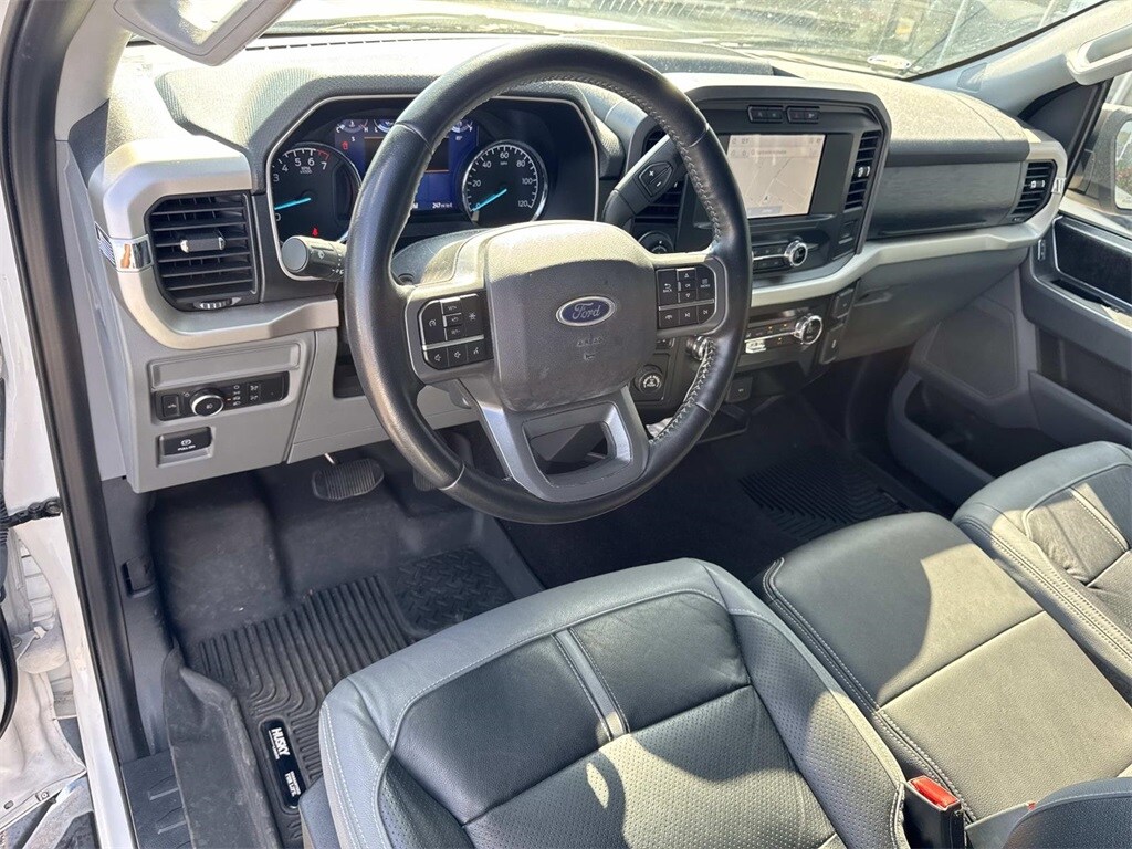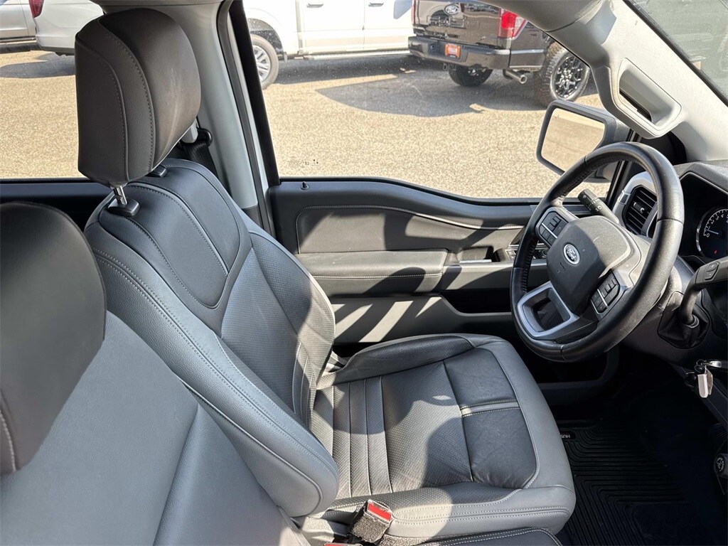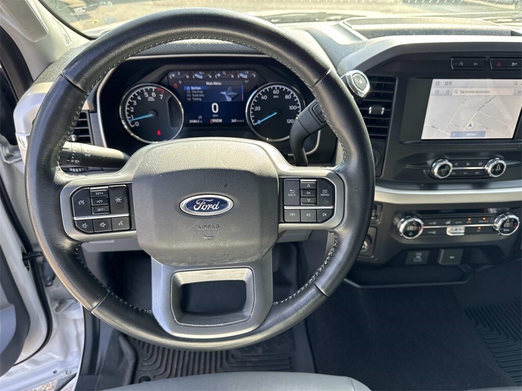 Oxford White This F-150 XLT is nicely equipped with Equipment Group 301A Mid (8-Way Power Driver's Seat w/Power Lumbar, Auto-Dimming Rear-View Mirror, Class IV Trailer Hitch Receiver, Power Glass Heated Sideview Mirrors, Radio: AM/FM SiriusXM w/360L, SecuriCode Drivers Side Keyless-Entry Keypad, and SYNC 4 w/Enhanced Voice Recognition), Trailer Tow Package (Integrated Trailer Brake Controller and Pro Trailer Backup Assist), XLT Chrome Appearance Package (2-Bar Style Grille w/Chrome 2 Minor Bars, Chrome Door & Tailgate Handles w/Body-Color Bezel, Chrome Single-Tip Exhaust, Chrome Step Bars, and Wheels: 18" Chrome-Like PVD), 4-Wheel Disc Brakes, 6 Speakers, ABS brakes, Air Conditioning, Alloy wheels, AM/FM radio, Auto High-beam Headlights, Brake assist, Bumpers: chrome, Cloth 40/20/40 Front Seat, Compass, Connected Built-In Navigation, Delay-off headlights, Driver door bin, Driver vanity mirror, Dual front impact airbags, Dual front side impact airbags, Electronic Stability Control, Emergency communication system: SYNC 4 911 Assist, Exterior Parking Camera Rear, Front anti-roll bar, Front Center Armrest w/Storage, Front fog lights, Front reading lights, Front wheel independent suspension, Fully automatic headlights, Heated door mirrors, Illuminated entry, Low tire pressure warning, Occupant sensing airbag, Outside temperature display, Overhead airbag, Overhead console, Panic alarm, Passenger door bin, Passenger vanity mirror, Power door mirrors, Power steering, Power windows, Radio data system, Radio: AM/FM Stereo w/6 Speakers, Rear reading lights, Rear step bumper, Rear window defroster, Remote keyless entry, Security system, Speed control, Speed-sensing steering, Split folding rear seat, Steering wheel mounted audio controls, SYNC 4, Tachometer, Telescoping steering wheel, Tilt steering wheel, Traction control, Trip computer, Variably intermittent wipers, Voltmeter, and Wheels: 17" Silver Painted Aluminum.