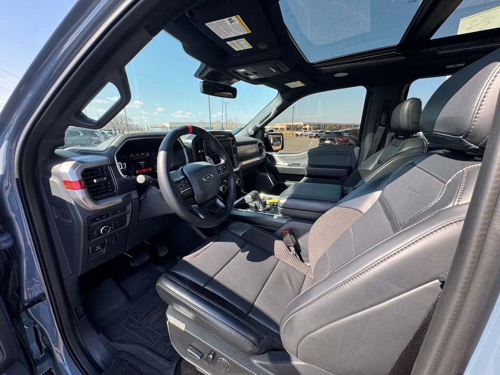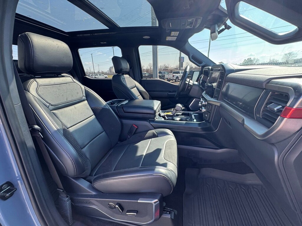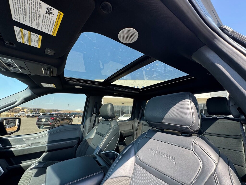Comfort and convenience are paramount in the Raptor, thanks to features like the power-operated tailgate, heated and ventilated front seats, and a heated steering wheel. The twin panel moonroof allows you to take in the great outdoors, while the adaptive suspension ensures a smooth and composed ride, even on the most challenging terrain.