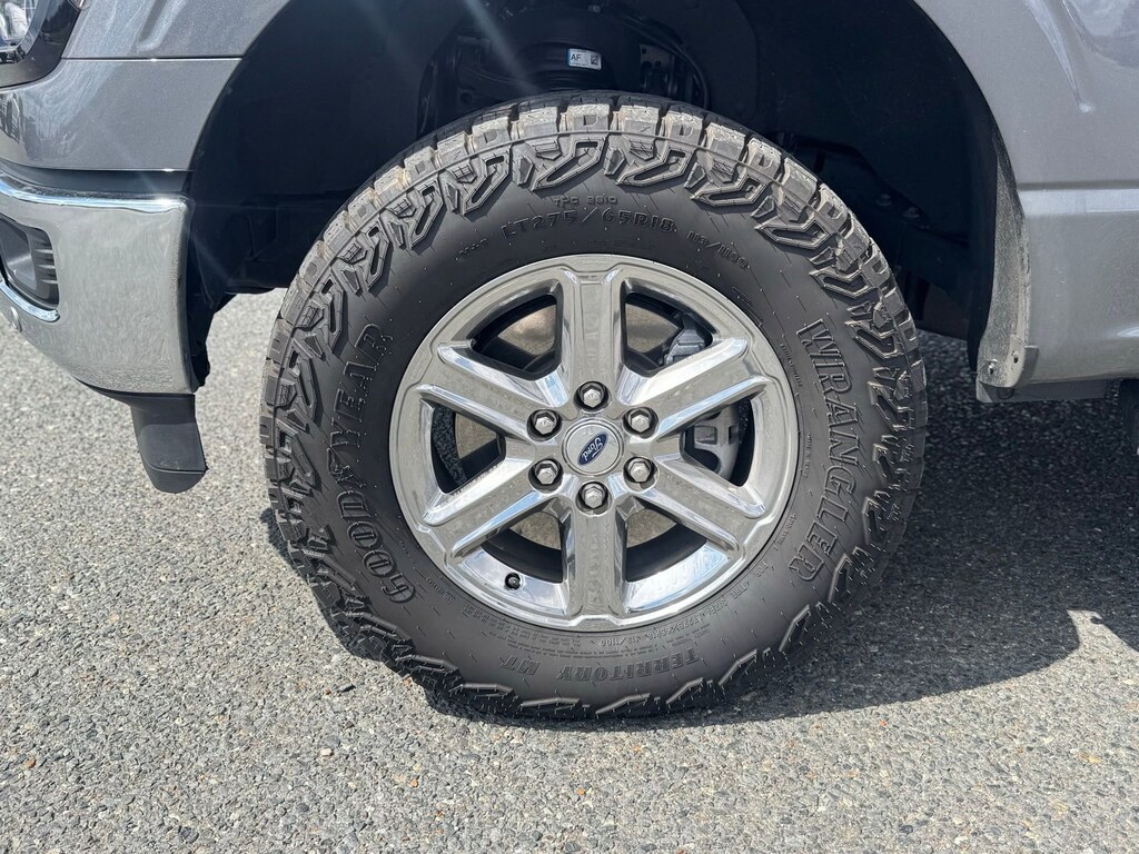 Complementing the impressive capabilities are the F-150 XLT's refined exterior styling cues, including a black painted grille with chrome center bar, chrome door and tailgate handles, and chrome single-tip exhaust. The 6-inch angular bright anodized step bars and 18-inch chrome-like PVD wheels add a touch of rugged elegance to this already striking truck.
