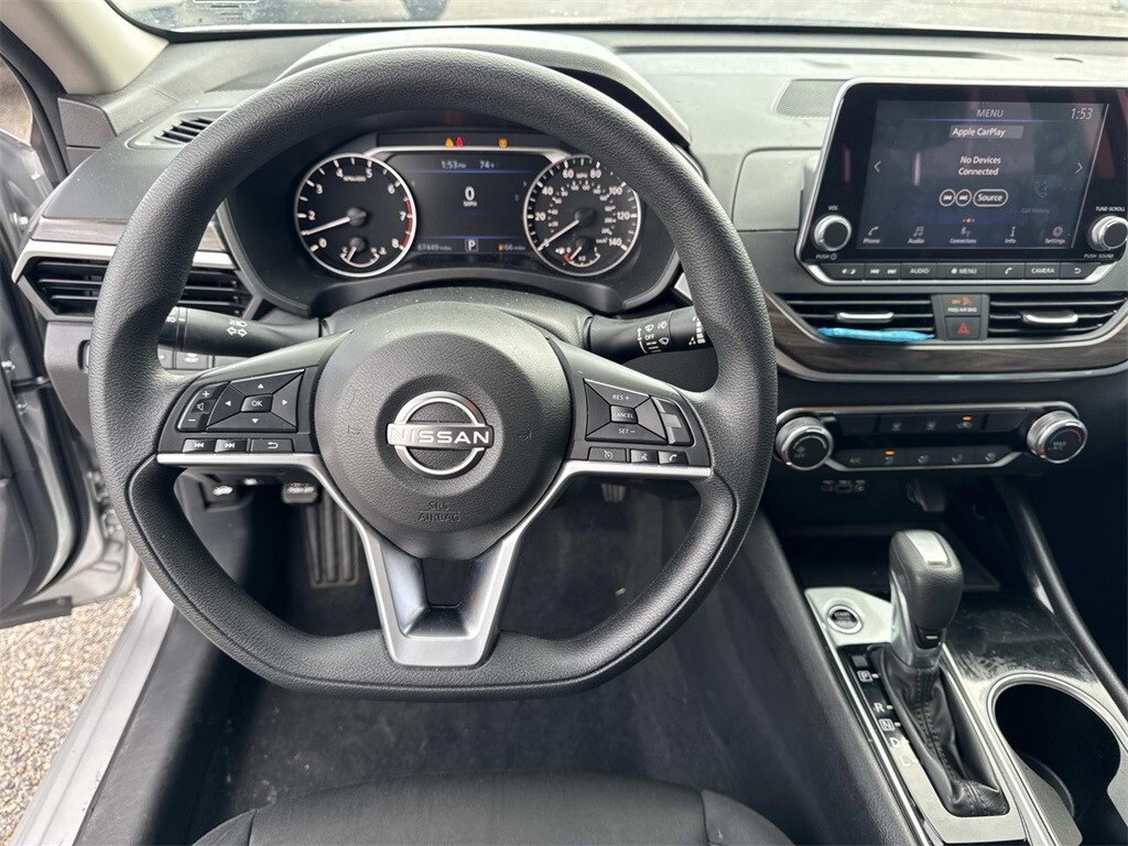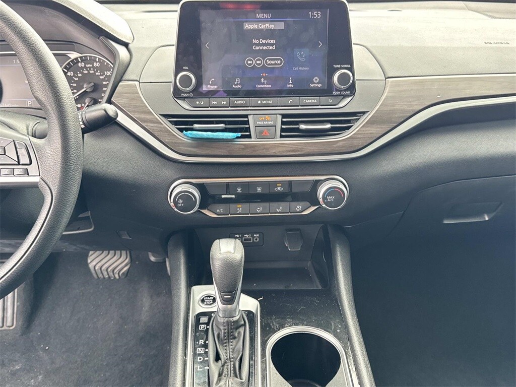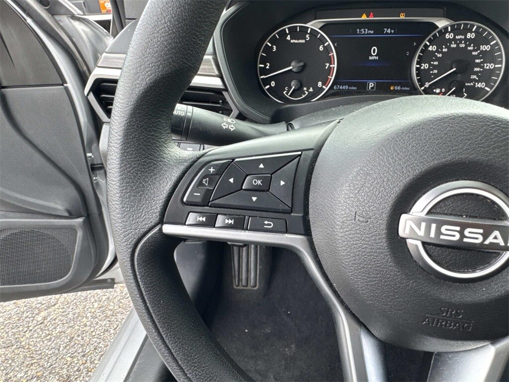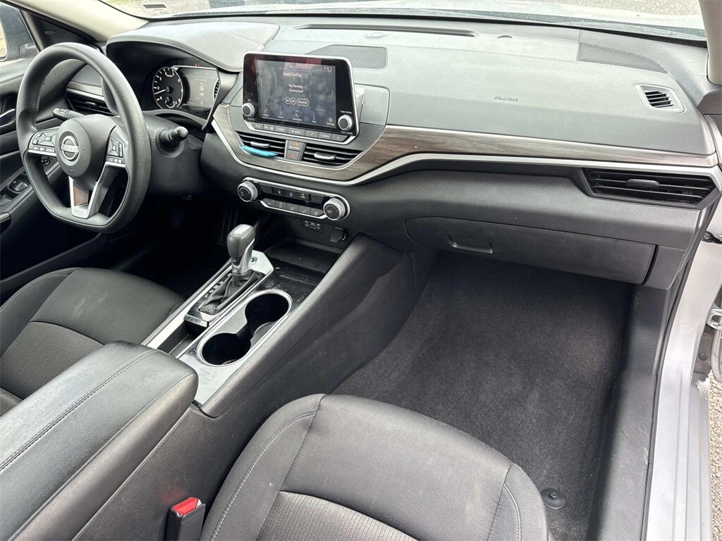 Brilliant Silver Metallic This Altima 2.5 SV is nicely equipped with CVT with Xtronic, 17" Alloy Wheels, 4-Wheel Disc Brakes, 6 Speakers, ABS brakes, Air Conditioning, Alloy wheels, AM/FM radio: SiriusXM, Auto High-beam Headlights, Blind Spot Warning, Brake assist, Bumpers: body-color, Cloth Seat Trim, Delay-off headlights, Driver door bin, Driver vanity mirror, Dual front impact airbags, Dual front side impact airbags, Electronic Stability Control, Floor Mats/Trunk Mat/Hideaway Net, Four wheel independent suspension, Front anti-roll bar, Front Bucket Seats, Front Center Armrest, Front reading lights, Fully automatic headlights, Illuminated entry, Knee airbag, Low tire pressure warning, NissanConnect featuring Apple CarPlay, Occupant sensing airbag, Outside temperature display, Overhead airbag, Overhead console, Panic alarm, Passenger door bin, Passenger vanity mirror, Power door mirrors, Power driver seat, Power steering, Power windows, Radio data system, Radio: AM/FM Audio System, Rear anti-roll bar, Rear Parking Sensors, Rear reading lights, Rear seat center armrest, Rear side impact airbag, Rear window defroster, Remote keyless entry, Security system, Speed control, Speed-sensing steering, Speed-Sensitive Wipers, Split folding rear seat, Steering wheel mounted audio controls, Tachometer, Telescoping steering wheel, Tilt steering wheel, Traction control, Trip computer, and Variably intermittent wipers. CVT with Xtronic.